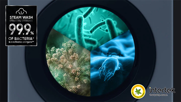Обеспечьте одежде глубокую гигиеническую обработку паром. Он удаляет въевшуюся грязь, 99.9% бактерий и нейтрализует аллергены, полученные от пылевых клещей во время стирки. Гигиенический цикл с паром уменьшает воздействие пылевых клещей, кошачьей, собачьей, травяной пыльцы и грибков.