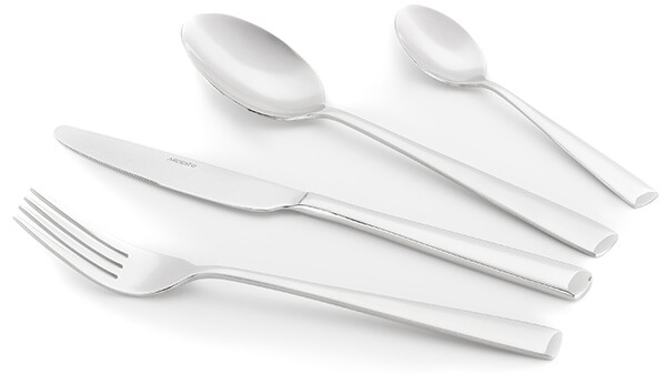 Набор столовых приборов из 24 предметов. Включает в себя: ложки, вилки и ножи. Приборы выполнены из нержавеющей стали с зеркальной полировкой.