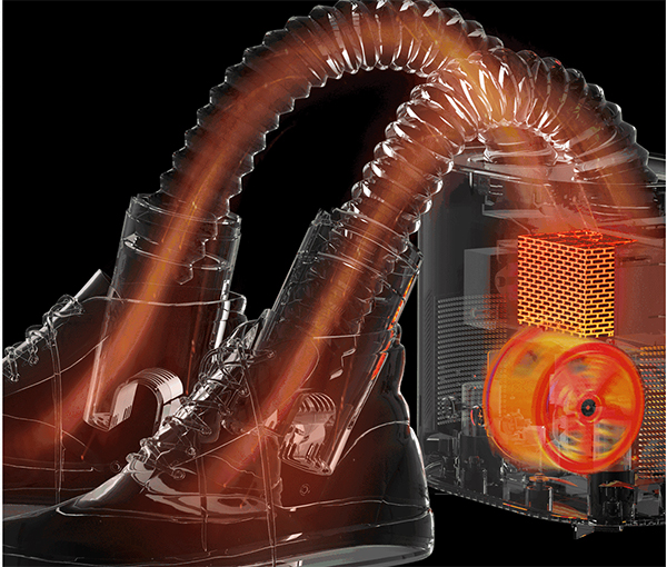 Горячий воздух с температурой в 65 ˚С позволяет быстро и эффективно высушить обувь. Кроме этого, Вы можете уменьшить исходную температуру до 45 ˚С, чтобы не повредить внутреннюю структуру сапог или туфель из мягкой кожи.
