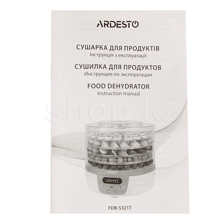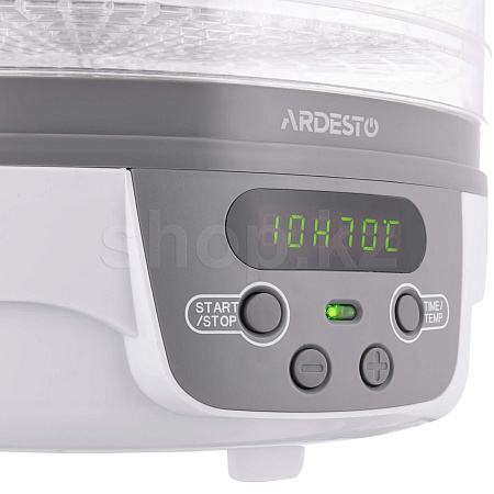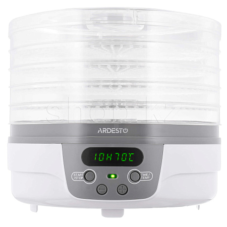 Сушить фрукты, овощи, зелень, ягоды, мясо, рыбу, хлеб и другие продукты можно с помощью сушилки Ardesto FDB-5321T. Температура сушки регулируется от 40 до 70 °С, что позволяет выбрать наиболее подходящий режим работы, чтобы сохранить больше витаминов и минералов в продуктах.