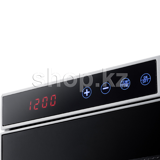 Благодаря горизонтальному обдуву смешение запахов при сушке одновременно разных продуктов минимально. На сушилке можно установить температуру сушки в диапазоне 35–75 °С с шагом 5 градусов. Сушилка оснащена таймером до 24 часов работы с шагом 30 минут.