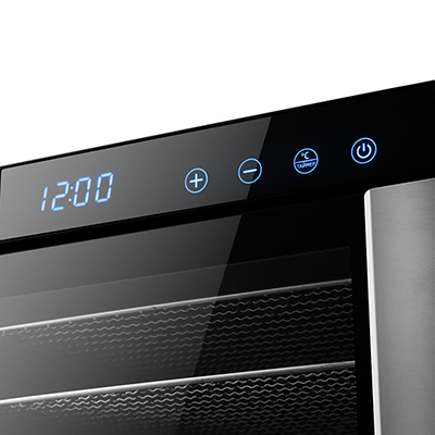 На сушилке можно установить температуру сушки в диапазоне 35–75 °С с шагом 5 градусов. Сушилка оснащена таймером до 24 часов работы с шагом 30 минут.