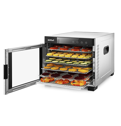 Электрическая сушилка КТ-1911 предназначена для сушки овощей, фруктов, ягод, грибов, корнеплодов, трав и зелени, а также мяса и рыбы, хлеба. С помощью специального поддона для жидкости можно готовить пастилу.