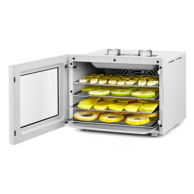 Не займёт много места Благодаря компактному корпусу и оптимальному количеству поддонов сушилка для овощей и фруктов не займёт много места у вас на кухне. А через встроенное прозрачное окошко из закалённого стекла вы легко сможете наблюдать за процессом сушки. |