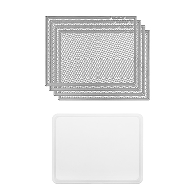 Полный набор Сушилка имеет в комплекте 4 вместительных поддона с сеткой из нержавеющей стали и 1 поддон для жидкостей. |