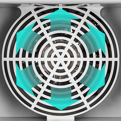 Равномерная горизонтальная сушка Сушилка оборудована большим мощным вентилятором, что обеспечивает равномерный обдув всех 5 поддонов. Поток воздуха направлен горизонтально, поэтому запахи продуктов с разных поддонов не смешиваются. |