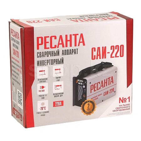 Инверторный сварочный аппарат Ресанта САИ-220 подходит для сварки металлических конструкций постоянным током покрытым электродом до 5 мм. Сварочный ток регулируется от 10 до 220 А ровных сварных швов и для более точной работы.