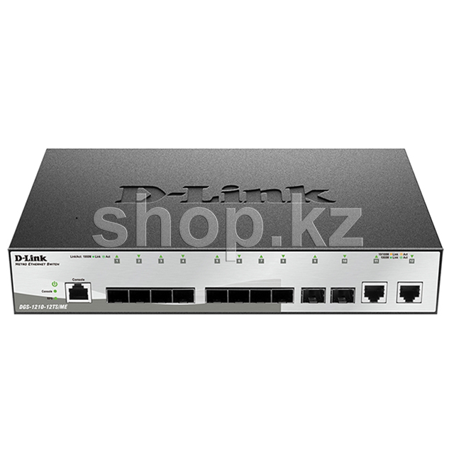 Коммутатор DGS-1210-12TS/ME является идеальным решением для применения в сетях Metro Ethernet. Коммутатор оснащен 10 портами 1000Base-X SFP и 2 портами 10/100/1000Base-T. Защита от статического электричества 6 кВ обеспечивает устойчивость к скачкам напряжения, а полный набор функций безопасности и аутентификации защищает сеть от внутренних и внешних угроз.