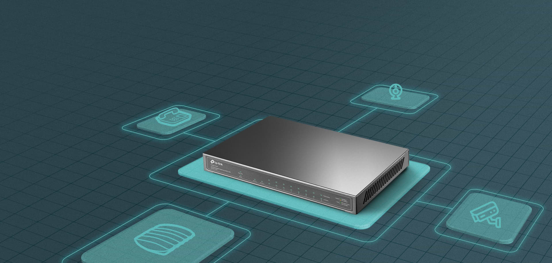 10-портовый настольный гигабитный коммутатор с 8 портами PoE+.