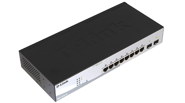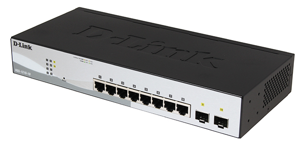 Настраиваемый коммутатор серии WebSmart DGS-1210-10, оснащенный 8 портами 10/100/1000Base-T и 2 портами 1000Base-X SFP, поддерживает технологию D-Link Green и расширенные функции управления и безопасности, обеспечивая высокую производительность и масштабирование сети.