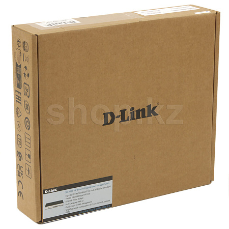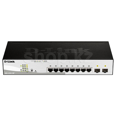 Настраиваемый L2 коммутатор DGS-1210-10P, оснащенный 8 портами 10/100/1000Base-T с поддержкой PoE и 2 портами 1000Base-X SFP, поддерживает технологию D-Link Green и расширенные функции управления и безопасности, обеспечивая высокую производительность и масштабирование сети.