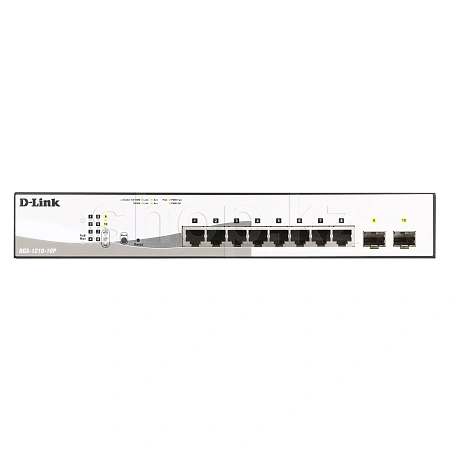 Коммутатор, D-Link, DGS-1210-10P/FL2A, Управляемый L2, 8 портов 10/100/1000Base-T, 2 порта 1000Base-X SFP, 8 портов PoE 802.3af/at, PoE-бюджет 65 Вт