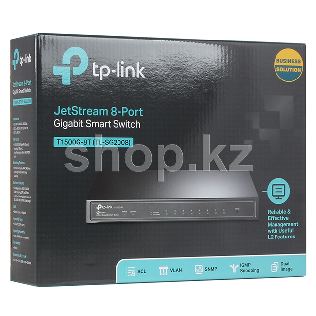 Коммутатор T1500G-8T оборудован 8 гигабитными портами RJ45, а порт 8 способен принимать питание от источника питания. Устройство обеспечивает высокую производительность благодаря приоритезации данных (QoS) уровня Enterprise, а также надёжными функциями безопасности и управления 2 уровня.