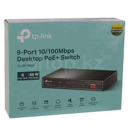 Благодаря соответствию стандартам PoE+ 802.3af/at каждый порт PoE поддерживает до 30 Вт, а общий бюджет PoE 65 Вт для 8 портов PoE+ открывает широкий ряд возможностей, например, позволяет создать видеонаблюдение для офисов, общежитий и малого бизнеса. TL‑SF1009P полностью совместим с IP‑камерами, точками доступа, IP‑телефонами, компьютерами, принтерами и не только.