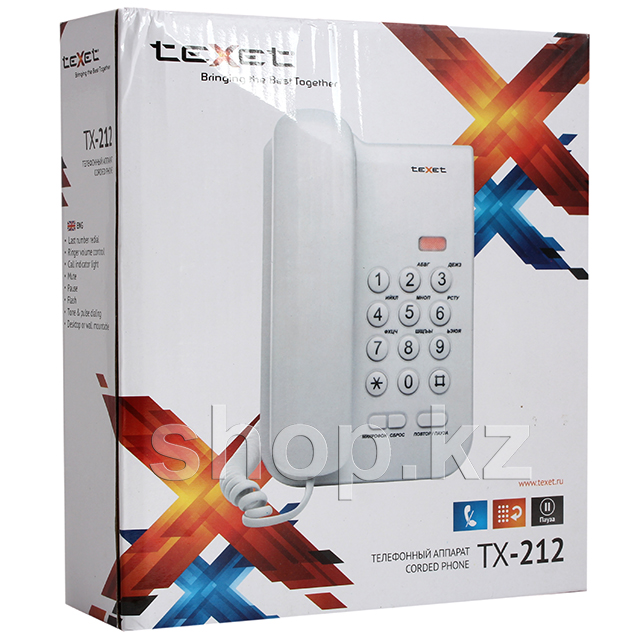 TX-212 обладает базовым набором функций, таким как повтор последнего набранного номера, отключение микрофона, регулировка громкости сигнала, а также имеется световая индикация звонка.