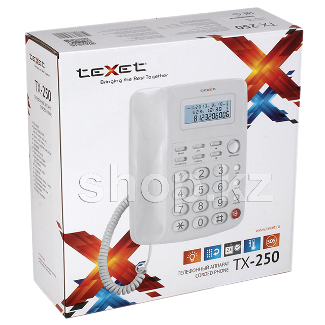 Большой информативный ЖК-дисплеи с яркой белой подсветкой, контрастность которой можно регулировать. На экране аппарата отображаются день недели, дата и время, а также показания встроенного в телефонный аппарат термометра!