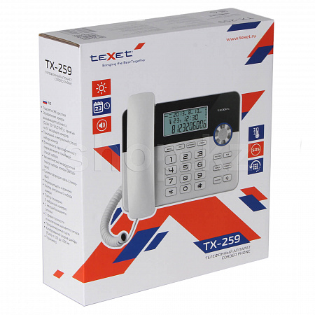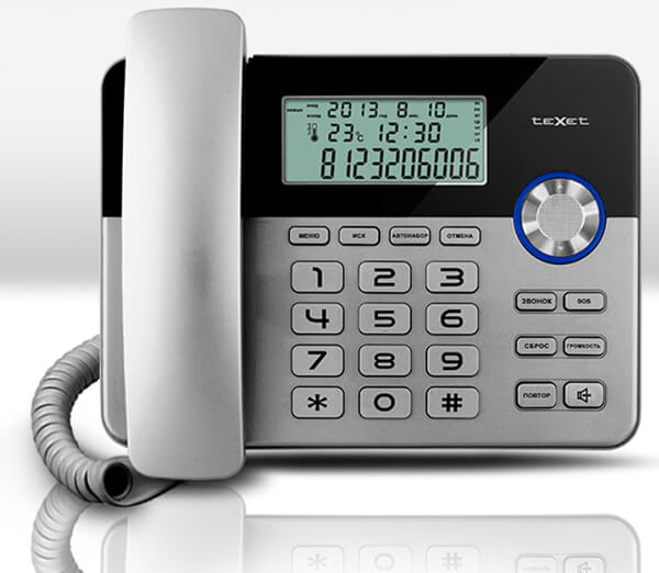 У телефона увеличенный ЖК-дисплей с яркой подсветкой, контрастность которой можно регулировать. Входящий вызывной сигнал сопровождается световой индикацией. На экране аппарата отображаются аналоговые часы, день недели, а также показания встроенного в телефонный аппарат термометра!