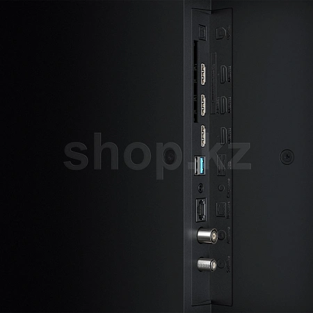 Телевизор оснащён 3 HDMI, 2 USB портами, AV, LAN, оптическим выходом (Optical Out), аудиоразъемом 3.5 мм Jack и CI+ слотом. Поддержка Bluetooth и Wi-Fi обеспечивают удобство беспроводного подключения.
