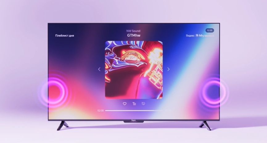 Инженеры Яндекса настроили и сбалансировали звук из двух динамиков мощностью 30Вт так, чтобы он стал ещё объёмнее и усиливал погружение в происходящее на экране даже без дополнительного саундбара.