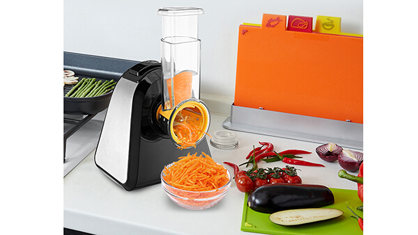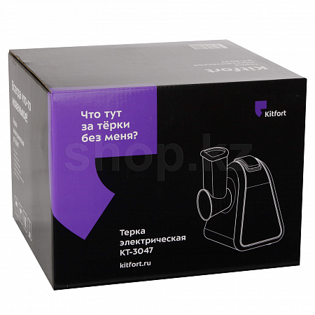 Электрическая компактная тёрка Kitfort КТ-3047 предназначена для тёрки и шинковки овощей, фруктов и других продуктов. Все продукты измельчаются автоматически, при этом контакт ножей тёрки с вашими руками исключён благодаря удобному толкателю.