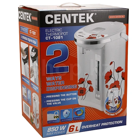 Термопот Centek CT-1081 нагревает воду и затем автоматически поддерживает ее горячей, экономя электроэнергию, воду и ваше время. Внутренняя камера и корпус термопота выполнены из долговечной и безопасной нержавеющей стали.