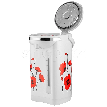 Термопот оборудован вращающейся подставкой, удобной ручкой для транспортировки и имеет LED-индикаторы работы. Прибор удобен в использовании и прост в уходе.