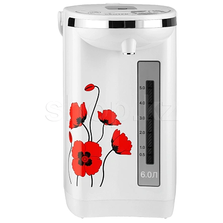 Подача воды осуществляется 2 способами: нажатием на кнопку и нажатием на рычаг чашкой. Объем камеры – 6 литров. В термопоте предусмотрена шкала уровня воды. Прибор имеет функции повторного кипячения, защиты от включения без воды и защиты от перегрева. Безопасная система блокировки.