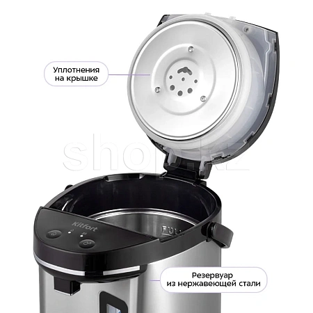 Двойные стенки термопота помогают сохранить тепло. Кипячение будет срабатывать реже и это поможет снизить потребление электроэнергии. Кроме того, вы можете использовать термопот длительное время вдали от места подключения к сети. Удобно и безопасно переносить