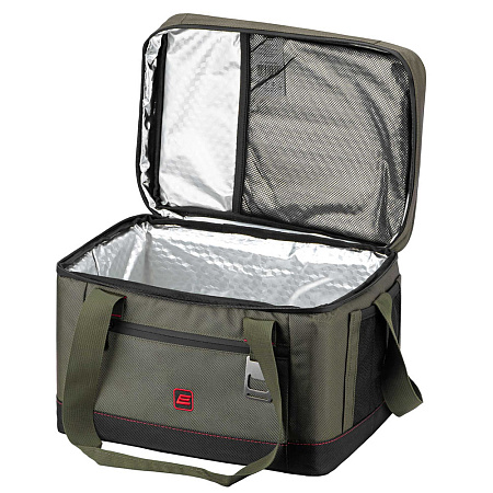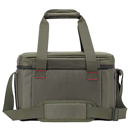 Стильная термосумка темно-оливкового цвета с черными вставками объемом 20 л. Предназначена для хранения температуры (холодной или горячей) напитков и продуктов