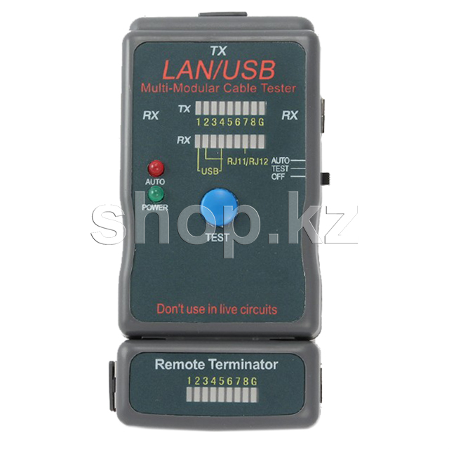 Для тестирования USB (A / A), USB (A / B), 100Base-TX, 1000Base-TX, Token Ring, модульные кабели EIA / TIA568A / 568B и RJ11 / RJ12