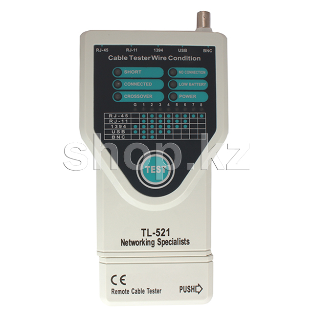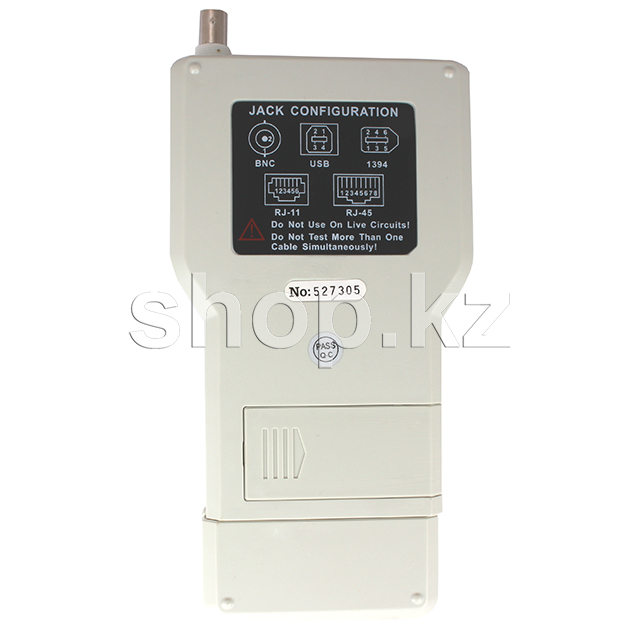 Применяется для тестирования витой пары, телефонного, USB и коаксиального кабеля. Состоит из активной и пассивной части (заглушки). Имеет встроенный BNC терминатор 25/50 Ом, индикацию прямого или кроссового соединения, индикацию зарядки батареи питания. Максимальная длина тестируемого кабеля: 100 м.