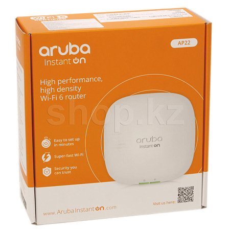 Точка доступа  Aruba Instant On AP22 поддерживает стандарт IEEE 802.11ax, обеспечивая высокую производительность благодаря технологии 2x2 MU-MIMO (многопользовательские системы с множественным входом и множественным выходом), а также беспроводные службы стандарта 802.11a/b/g/n/ac. Точка доступа AP22 предназначена для установки на потолке или на стене.