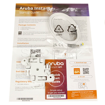 Точка доступа с двумя радиомодулями Aruba Instant On AP25 поддерживает стандарт IEEE 802.11ax, обеспечивая высокую производительность благодаря технологии 4x4 MU-MIMO (многопользовательские системы с множественным входом и множественным выходом), а также беспроводные службы стандарта 802.11a/b/g/n/ac. Точка доступа AP25 предназначена для установки на потолке или на стене.