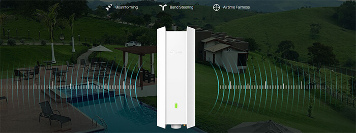 Благодаря Wi-Fi 6 совокупная скорость Wi-Fi двух диапазонов EAP610‑Outdoor составляет до 1.8 Гбит/с, при этом скорость передачи данных увеличена и на 2.4 ГГц, и на 5 ГГц, что позволяет размещать точку доступа в местах с высокой плотностью клиентов, например, в уличных кафе или в парках.