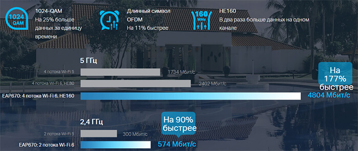 Скорость до 5378 Мбит/с по Wi-Fi 6 в несколько раз выше, чем у Wi-Fi 51, благодаря чему работа каждого приложения будет казаться более плавной.