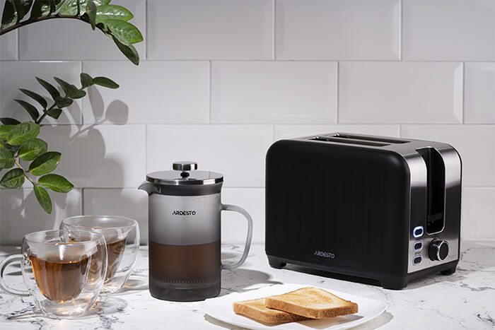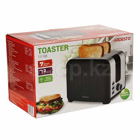 Тостер Ardesto T-F18B на два ломтя хлеба в корпусе из нержавеющей стали с черными вставками. Тостер имеет функции размораживания, подогрева и автоматического выключения.