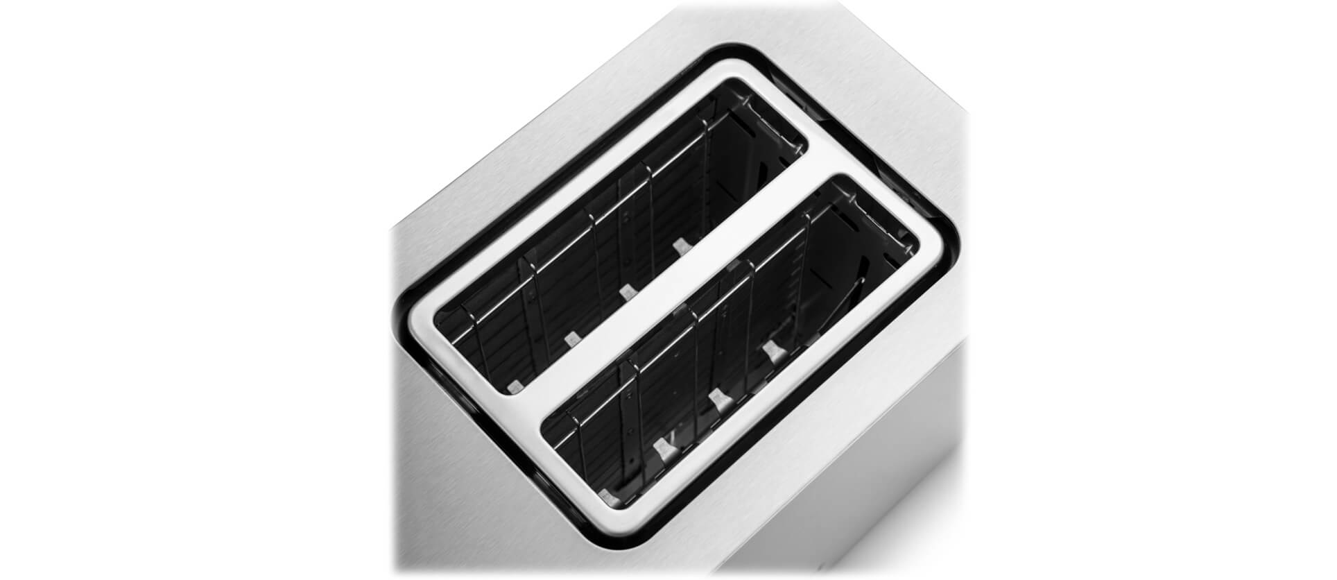 Широкие слоты для тостов позволяют поджаривать не только тонкие ломтики хлеба, но и толстые. Загруженные тосты автоматически центрируются, чтобы их поджарка с двух сторон была равномерной независимо от толщины куска.