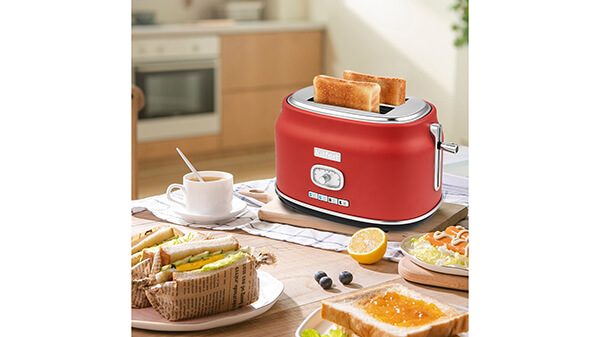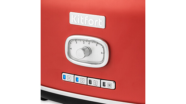 Тостер оснащён регулятором степени обжаривания и 4 кнопками. Есть режим «подогрева» для подогрева готовых тостов, «разморозка», а также режим «бейгл» для поджарки рогаликов или других мучных изделий, которые требуют более интенсивной прожарки.