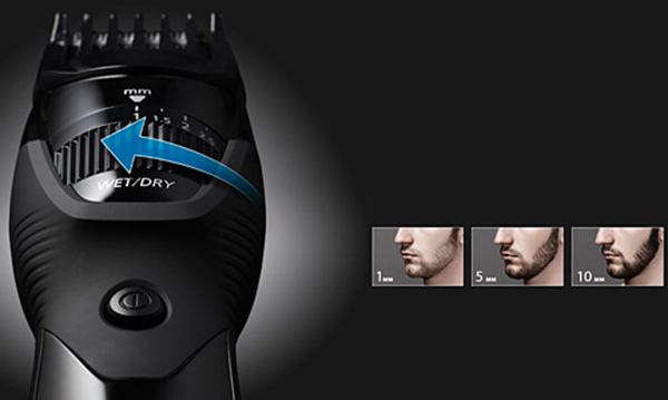 Дисковый переключатель имеет 19 настроек (0.5-10 мм) и позволяет легко регулировать длину стрижки для получения идеальной бороды желаемой длины.
