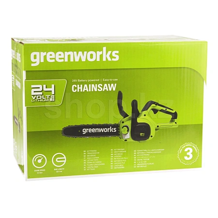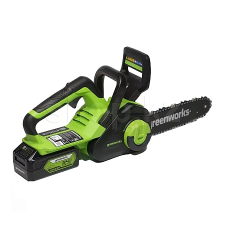 Пила цепная аккумуляторная G-24 24V GREENWORKS G24CS25K2 с пильной шиной длиной 25 см имеет компактный размер, малый вес и отлично подойдет для выполнения несложных бытовых задач, а также подойдет рыбакам, охотникам и любителям походов. С ее помощью можно легко распилить строительные материалы, небольшие деревья и заготовить дрова. Для безопасной работы пила оснащена предохранителем и щитком для защиты рук.