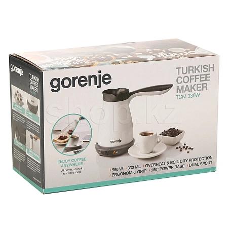 Электрическая турка Gorenje готовит до четырех чашек кофе одновременно. Угостите родных и друзей оригинальным кофе по-турецки или с добавлением сахара. Эту турку можно также использовать как электрический чайник.