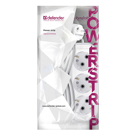Defender R330, 3 розетки, 1.5м, White ұзартқышы