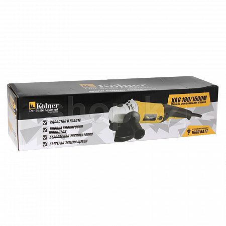 Угловая шлифовальная машина Kolner KAG 180/1600 используется в строительстве и ремонтных работах для шлифования, зачистки и резки различных материалов. Дополнительная рукоятка может быть установлена слева, справа или сверху, что способствует комфортному рабочему процессу. Для сохранности материала заготовки и уменьшения нагрузки на сеть при запуске временно снижаются крутящий момент и нагрузка электродвигателя.