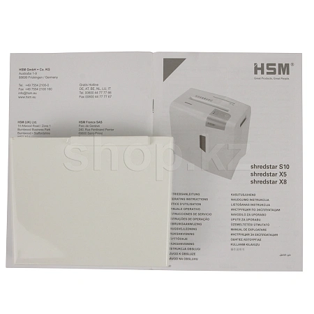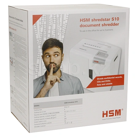 Уничтожители документов фирмы HSM созданы для более строгой защиты данных за рабочим столом или в домашнем офисе. Уничтожитель Shredstar S10 с крепкими стальными режущими валами нечувствителен к скрепкам и скобам для сшивания и измельчает в два счёта даже магнитные, клиентские карты и CD/DVD диски.