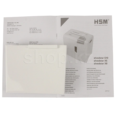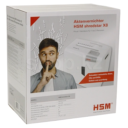 Уничтожители документов фирмы HSM созданы для более строгой защиты данных за рабочим столом или в домашнем офисе. Уничтожитель Shredstar X8 с крепкими стальными режущими валами нечувствителен к скрепкам и скобам для сшивания и измельчает в два счёта даже магнитные, клиентские карты и CD/DVD диски.