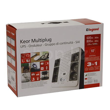 Keor Multiplug - источник бесперебойного питания с технологией интерактивной линии. Он обеспечивает номинальную мощность 600 VA, управляется центральным процессором и имеет внутреннюю клапанную герметичную свинцовую аккумуляторную батарею.