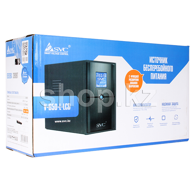 Линейно-Интерактивный ИБП SVC V-650-L-LCD - устройство, позволяющее подключенному оборудованию некоторое время работать от встроенных аккумуляторов, при пропадании электрического тока или при выходе его параметров за допустимые нормы. Кроме того, оно способно корректировать параметры (напряжение, частоту) электропитания. Часто применяется для обеспечения бесперебойной работы компьютеров. Информативный LCD-дисплей отображает все необходимые параметры в работе ИБП, что значительно облегчает использование ИБП.