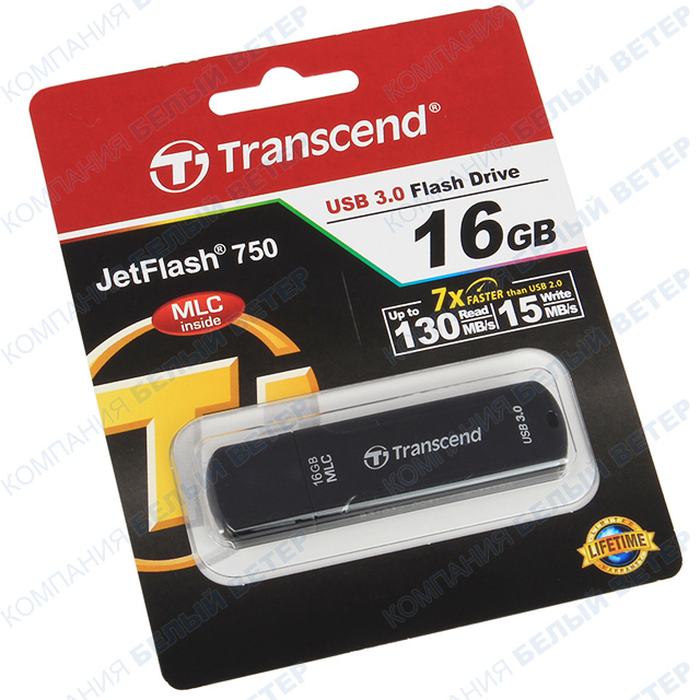 USB 16Gb Transcend JetFlash 750, USB 3.0, Black флешкасы