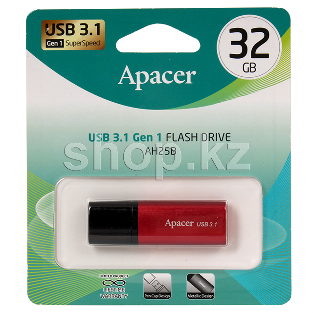 USB Флешка 32 GB Apacer AH25B, USB 3.1, Red