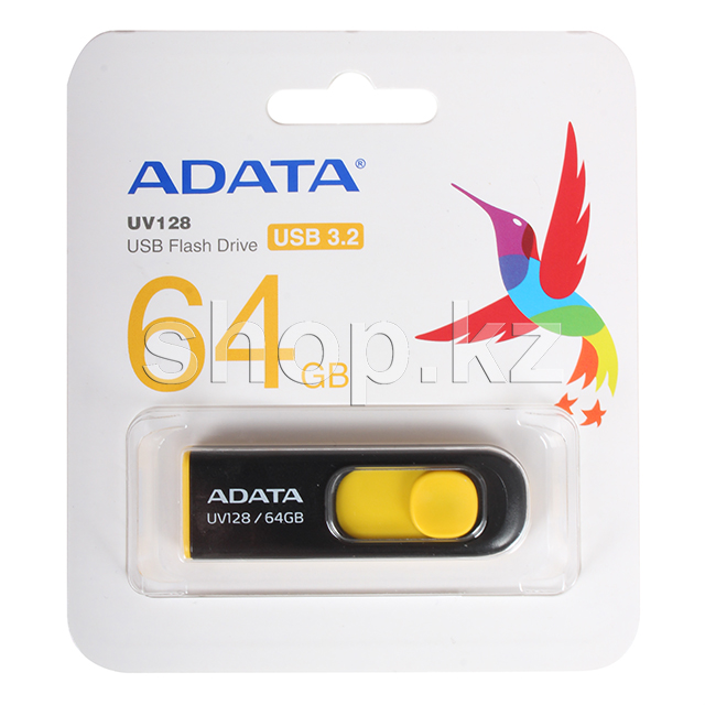 USB 64Gb ADATA UV128, USB 3.2, Black-Yellow флешкасы
